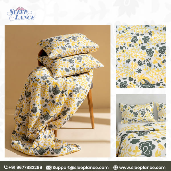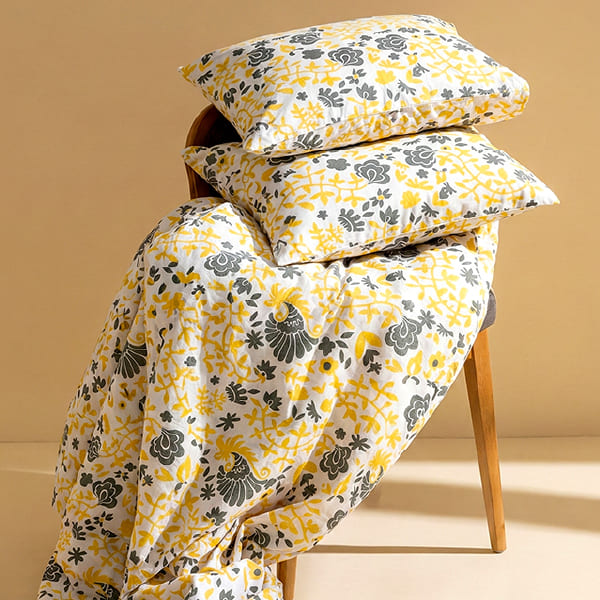 Celebrate the artistry of the morning sun with this vibrant take on traditional motifs. Featuring the majestic peacock and vine detail as its royal counterpart, this version swaps deep tones for a striking combination of charcoal gray and warm golden yellow. It’s a bold, cheerful design that turns your bedroom into a glowing sanctuary of artisanal craft.